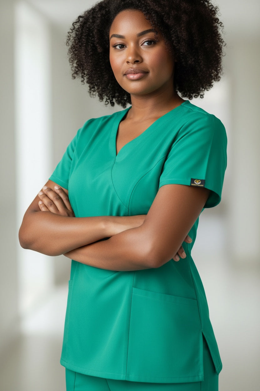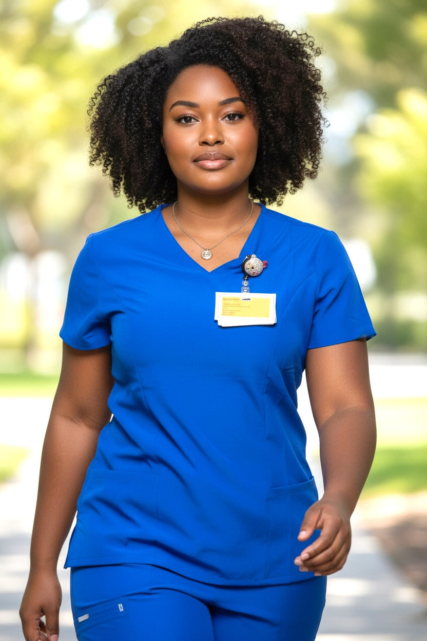 Discover the ultimate blend of comfort and functionality with the Galore Basic V Neck Top, designed for medical professionals who need their scrubs to work just as hard as they do. Thoughtfully crafted to balance form and function, this top delivers effortless style with all day performance.